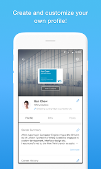 過去に名刺交換をした方が Eight を利用していると名前の横に Eight のマークが表示されます。ユーザー同士が“つながる”(Eight上でも名刺を交換する)と、相手の名刺情報に変更があった際に通知を受けることができます。また最近はユーザー同士でメッセージを送れる機能が追加されました。さらに Facebook と連動させることにより、Facebook の知り合いが Eight を利用し始めると自動的にEight で名刺が交換され、相手の最新の連絡先を確認できます。昔知り合った人の「今」を知ることができるのは、このアプリならではの強みでしょう。