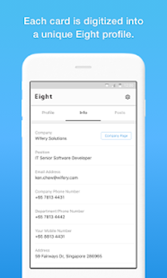 Eight - 無料の名刺管理アプリ(以下、Eight)は、名刺をデータ化できる無料アプリです。スマートフォンのカメラで名刺を撮影するだけでデータ化できる手軽さが人気で、今や 50 万人以上ものユーザーに愛用されています。仕事で日常的に名刺をやりとりするビジネスマンはもちろん、イベントや異業種交流会などで名刺を交換する機会のある人、今までに交換した名刺がたまってきて管理に困っているなどという方にもおすすめです。